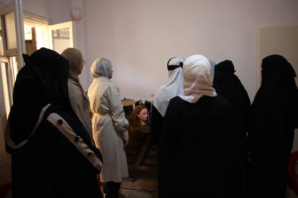 جاء تدريب الكوافيرة كاستجابة مباشرة لما رصدناه من احتياج حقيقي بين النساء في المدينة. بدأنا البرنامج باختبار قبلي لقياس الخلفية المعرفية للمشاركات، ثم انطلقنا بدروس نظرية وتطبيقات عملية متكاملة، ترافقها اختبارات تقييمية بعد كل مرحلة